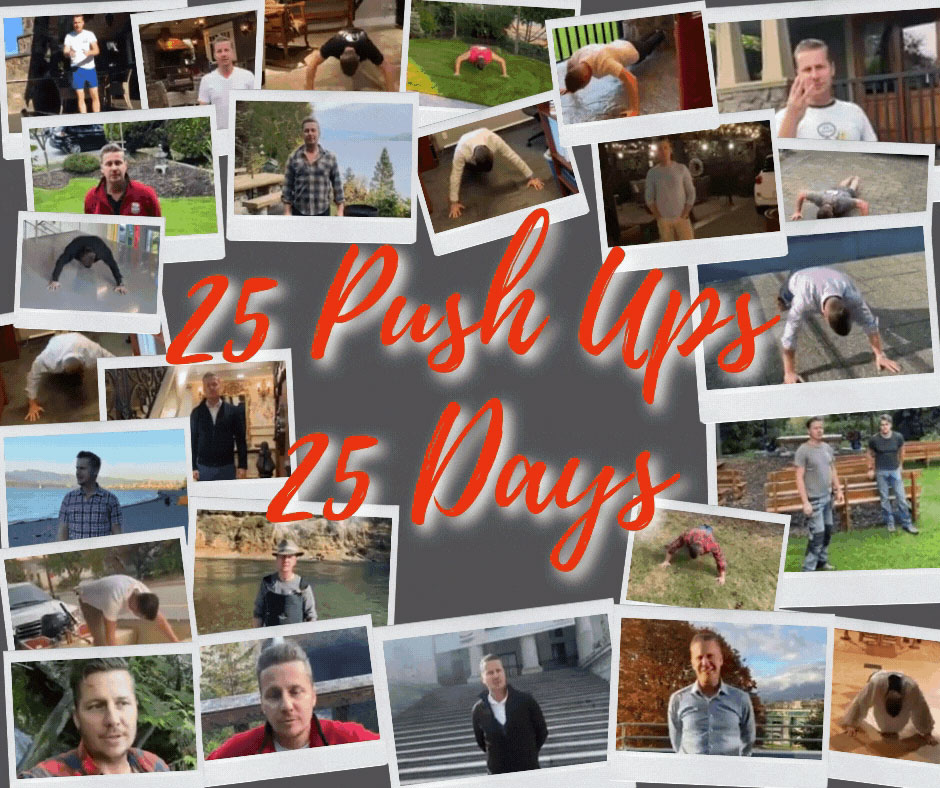 Matthew Senf was nominated by a childhood friend to do 25 push ups for 25 days to raise awareness and support for people struggling with mental health challenges: PTSD (Post Traumatic Stress Disorder), anxiety and depression. Matthew is a renaissance man and wears many hats. He volunteered in the Vancouver Downtown Eastside as a chaplain, is an ordained Lutheran Pastor and holds degrees in Political Science, Religious Studies and Theology. Lets not forget, he builds homes and motorcycles as well.