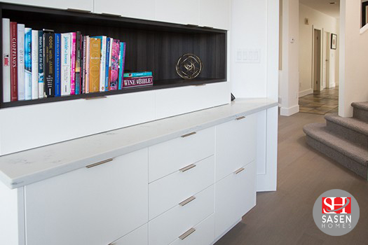 Our clients wanted a kitchen that was not only sleek and modern but functional. This kitchen renovation was driven by particular lifestyle elements of the homeowners in particular, individual drawers for all the kids and adults in the family to use as their personal storage while keeping the house organized. We opened up the kitchen to take advantage of the spectacular West Vancouver views. The vision for the sitting area was to be television free and a place for the family to gather and spend quality time together.